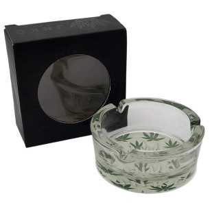 Popelník kulatý skleněný 10cm | Série Marihuana | Design 4 | Listy plevele 4