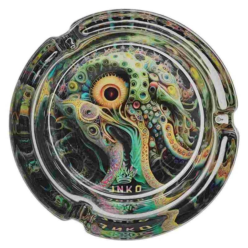 Popelník kulatý skleněný 10cm | Psychedelický seriál | Design 8 | Chobotnice 1