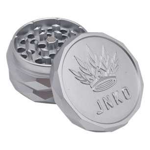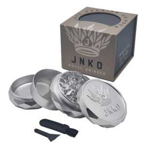 Jeder JNKO Premium Royal Grinder trägt stolz unser charakteristisches JNKO 3D-Logo, das in das Aluminium eingraviert ist. Dieses unverwechselbare Logo verleiht einen Hauch von Raffinesse und unterscheidet unsere Mühlen von anderen, was JNKOs Engagement für Qualität widerspiegelt.