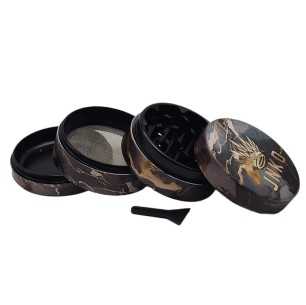 En plus de la fonctionnalité, nous souhaitons également proposer des grinders attrayants. C'est pourquoi nos grinders présentent des images d'art de marbre de luxe moderne avec de magnifiques accents dorés. Chaque design est soigneusement sélectionné et adhère bien à l'aluminium, garantissant ainsi que le design reste beau au fil du temps. Ces designs uniques donnent à votre grinder à 4 couches une allure artistique et font du grind de vos herbes, tabac ou herbe une expérience visuellement attrayante.