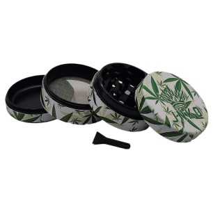 Grinder 4 parties XL | Aluminium | 55 mm | Série sur la marijuana | Conception 6 | Feuilles de mauvaises herbes 6