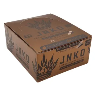 Bruine vloei en tip van het merk JNKO herken je direct aan de stijlvolle verpakking. Door gebruik te maken van rijstpapier rollen de JNKO Brown Unbleached vloeitjes super soepel en zijn ze zeer goed bestand tegen scheuren. Alle vloeitjes zijn 100% Vegan en hebben een FDA keurmerk, zodat je van de allerbeste kwaliteit verzekerd bent. Bruine ongebleekte vloei van JNKO is minder schadelijk dan de regular versie. Ieder pakje JNKO lange vloei heeft een normaal papiertje aan het begin, zodat je zeker weet dat je een nieuw ongeopend pakje krijgt. Als het pakje vloei bijna leeg is en de laatste 5 vloeitjes zijn bereikt, vindt je wederom een normaal papiertje met de waarschuwing laatste 5. Zo weet je zeker dat je nooit onverwachts zonder lange vloei komt te zitten. In dit winkeldisplat zitten 50 pakjes JNKO Brown Unbleached lange vloei.