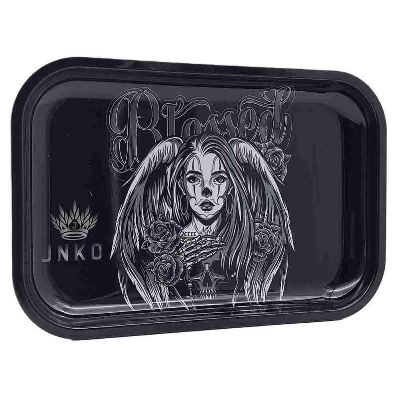 - Geschikt voor Elke Ruimte: Of je nu een fervent wietroker bent of gewoon op zoek bent naar een stijlvol en decoratief stuk voor je interieur,, een rolling tray van de "Chicano Tattoo Art" serie van JNKO is de juiste keuze.