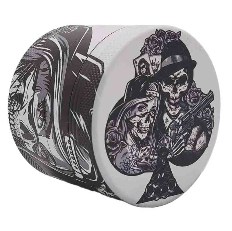 Naast functionaliteit willen we ook aantrekkelijke grinders aanbieden. Daarom zijn onze grinders voorzien van diverse afbeeldingen met motieven van Chicano Tattoo Art. Elk ontwerp is zorgvuldig geselecteerd en hecht goed op het aluminium, waardoor het design langdurig mooi blijft. Deze unieke ontwerpen geven je 4-laagse grinder een artistieke uitstraling en maken het malen van je kruiden, tabak of wiet tot een visueel aantrekkelijke ervaring.