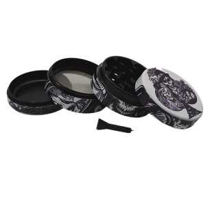 - Uniek en Eigentijds Ontwerp: De grinders zijn versierd met prachtige afbeeldingen van Chicano Tattoo Art die elegant over de grinder lopen. Deze artistieke elementen voegen een vleugje stijl en verfijning toe aan de grinder, waardoor het niet alleen functioneel is, maar ook een decoratieve aanvulling vormt in elke ruimte.Hoogwaardig Materiaal: De "Chicano Tattoo Art" grinder is vervaardigd van hoogwaardig aluminium, wat zorgt voor duurzaamheid en een luxueuze uitstraling. De grinder is bovendien eenvoudig schoon te maken, waardoor het onderhoud moeiteloos verloopt.