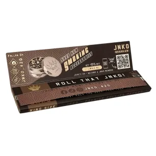 Lange vloei van het merk JNKO herken je direct aan de stijlvolle verpakking. Door gebruik te maken van rijstpapier rollen de JNKO Regular Deluxe vloeitjes super soepel en zijn ze zeer goed bestand tegen scheuren. Alle vloeitjes zijn 100% Vegan en hebben een FDA keurmerk, zodat je van de allerbeste kwaliteit verzekerd bent. Ieder pakje JNKO lange vloei heeft een normaal papiertje aan het begin, zodat je zeker weet dat je een nieuw ongeopend pakje krijgt. Als het pakje vloei bijna leeg is en de laatste 5 vloeitjes zijn bereikt, vindt je wederom een normaal papiertje met de waarschuwing laatste 5. Zo weet je zeker dat je nooit onverwachts zonder lange vloei komt te zitten.