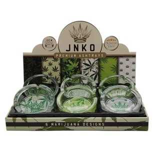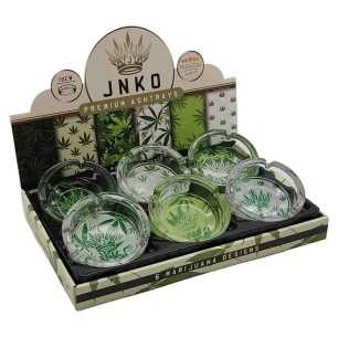 Display JNKO Szklane popielniczki z serii „Marihuana”.